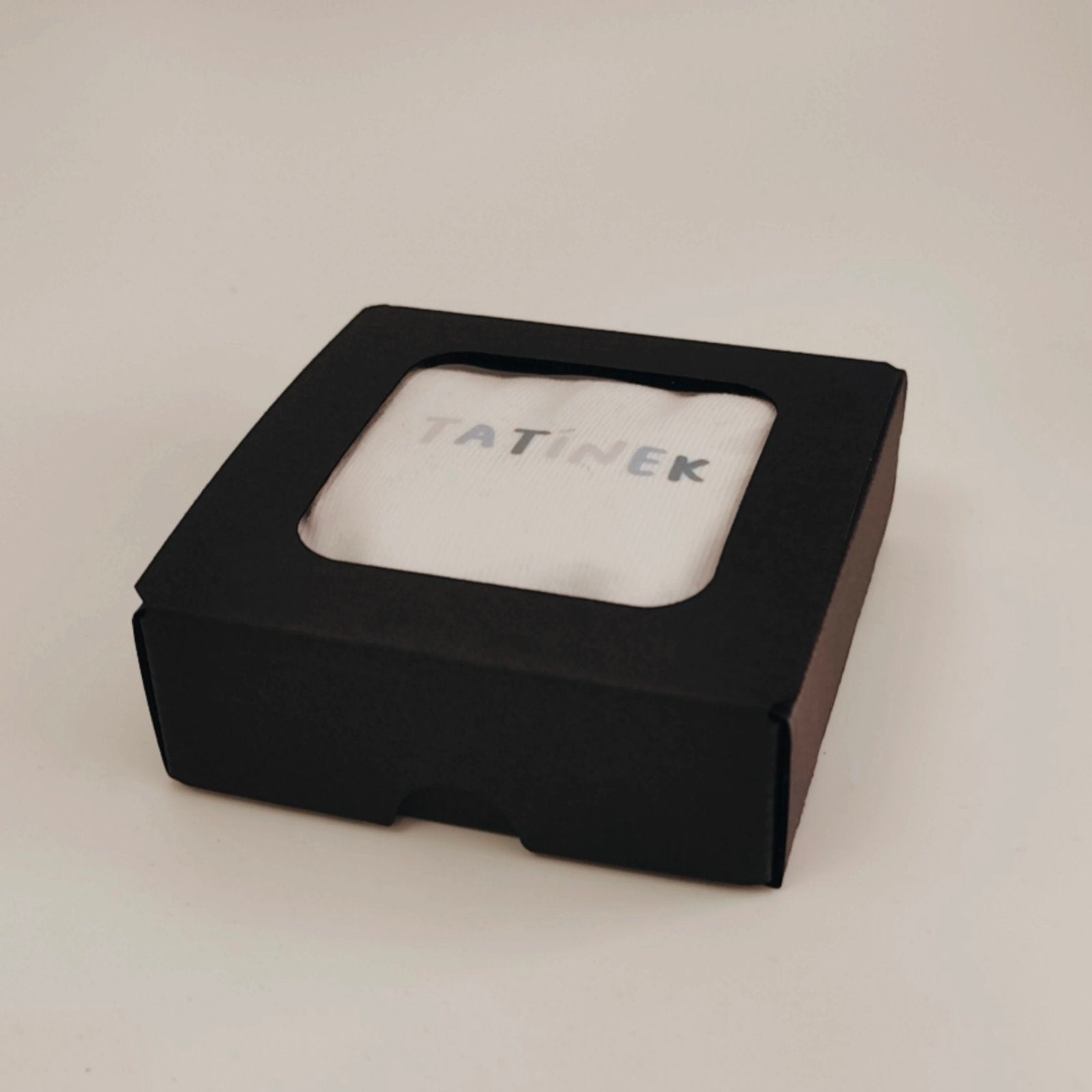 Bílé ponožky "Táta". Zabaleno v černé stylové krabičce s okénkem.