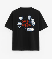 Oversized black T-shirt "Cats and coffee"
