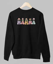 Melns UNISEX džemperis bez kapuces "Mamma ar puķēm"