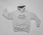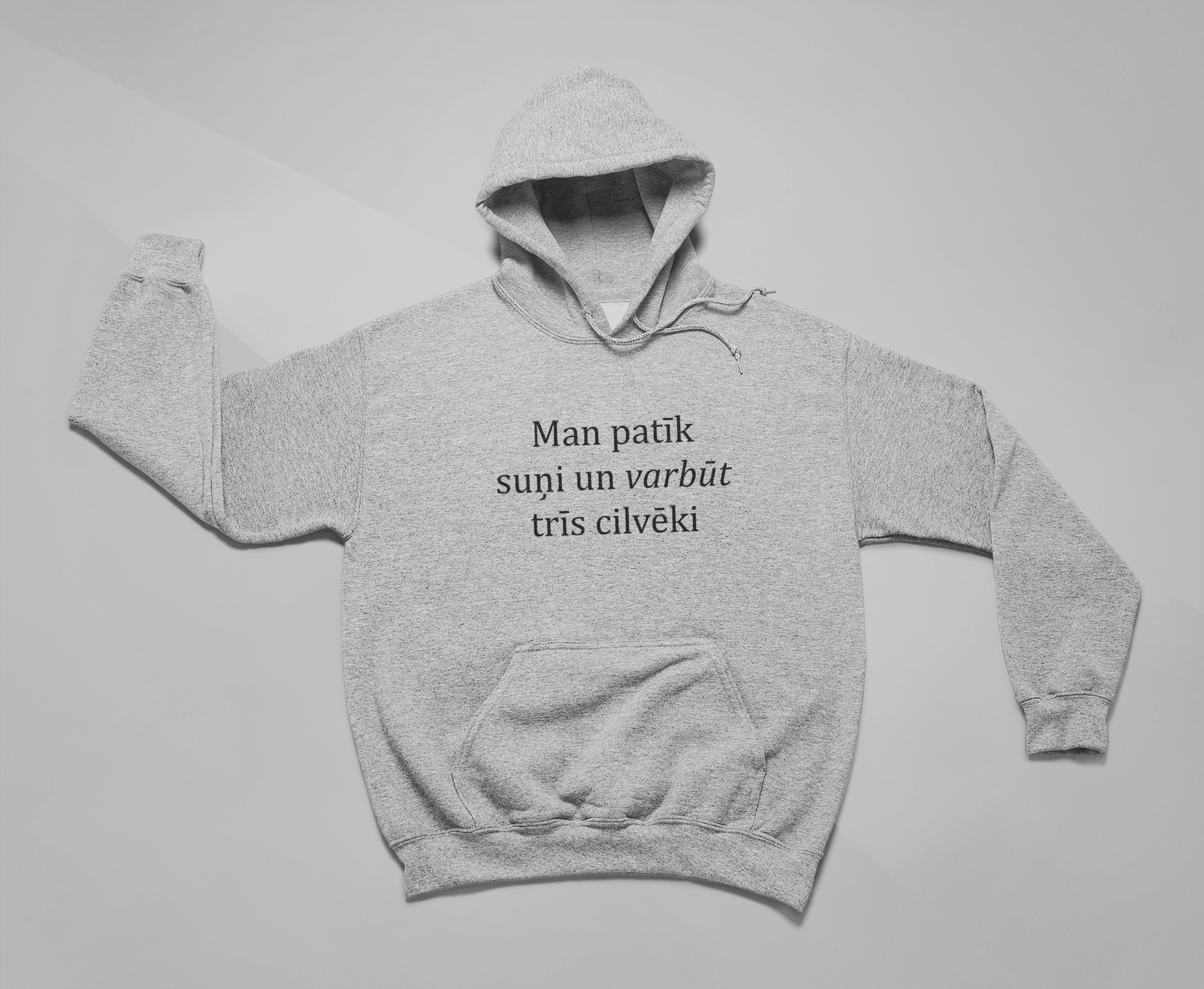 Pelēks melanžs džemperis ar kapuci "Man patīk suņi"
