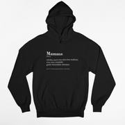 Melns UNISEX džemperis ar kapuci "Mammas apraksts"