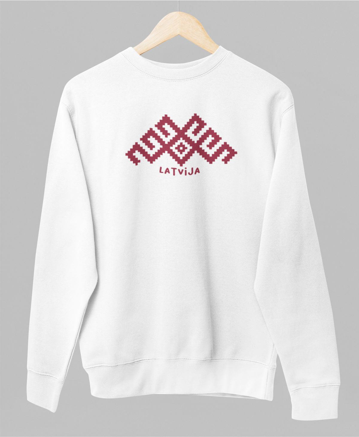 Balts UNISEX džemperis bez kapuces "Latviešu raksti"