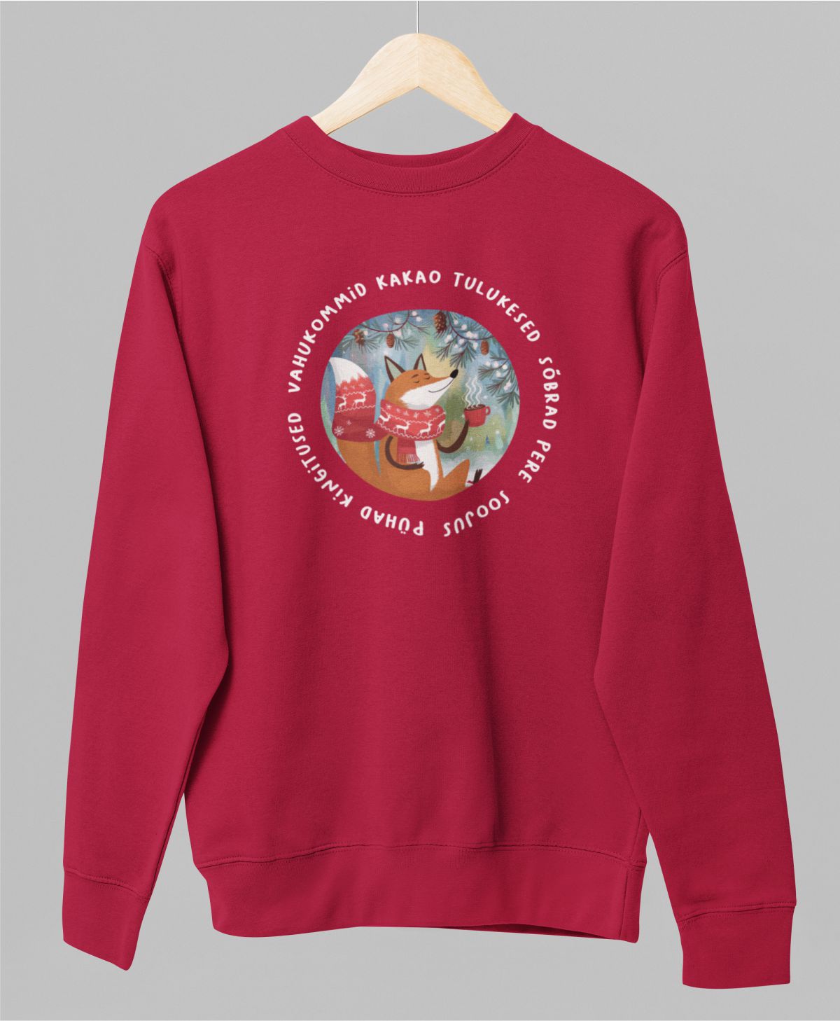 Punane UNISEX pusaer ilma kapuutsita "Jõulusümbolid"