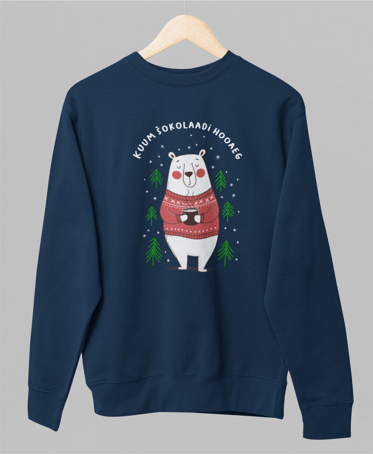 Sinine UNISEX pusaer ilma kapuutsita "Kuum šokolaadi hooaeg"