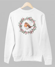 Valge UNISEX pusaer ilma kapuutsita "Jõululinnuke"