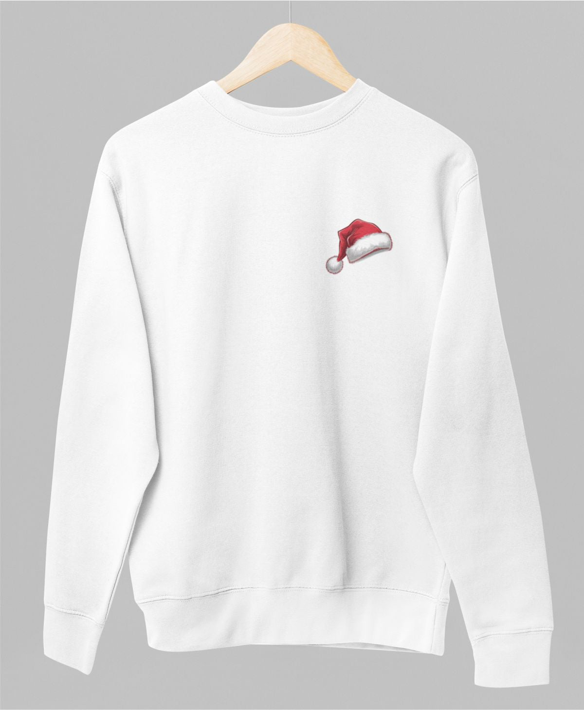 Valge UNISEX pusaer ilma kapuutsita "Jõulumütsike"