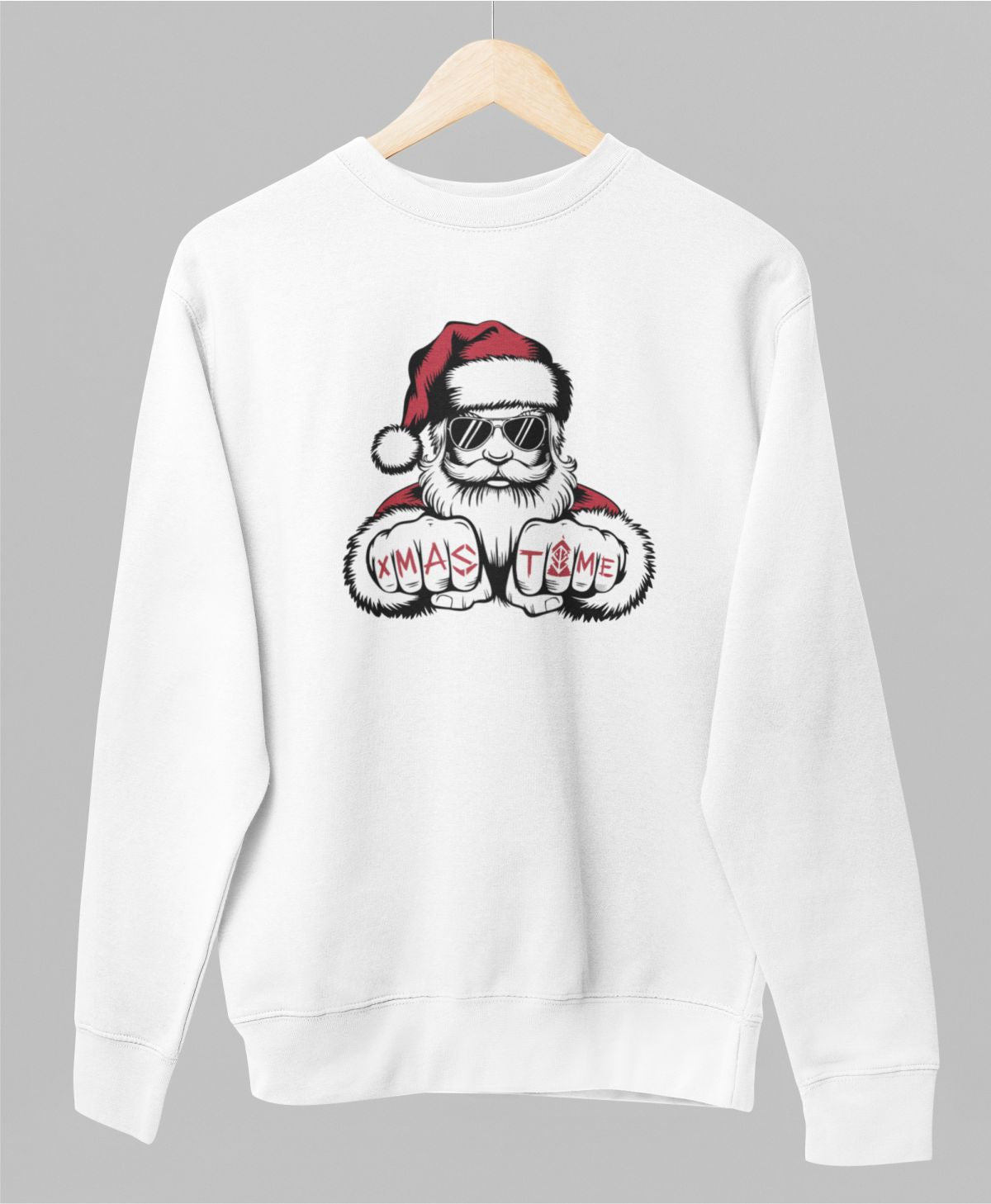 Valge UNISEX pusaer ilma kapuutsita "Lahe jõuluvana"