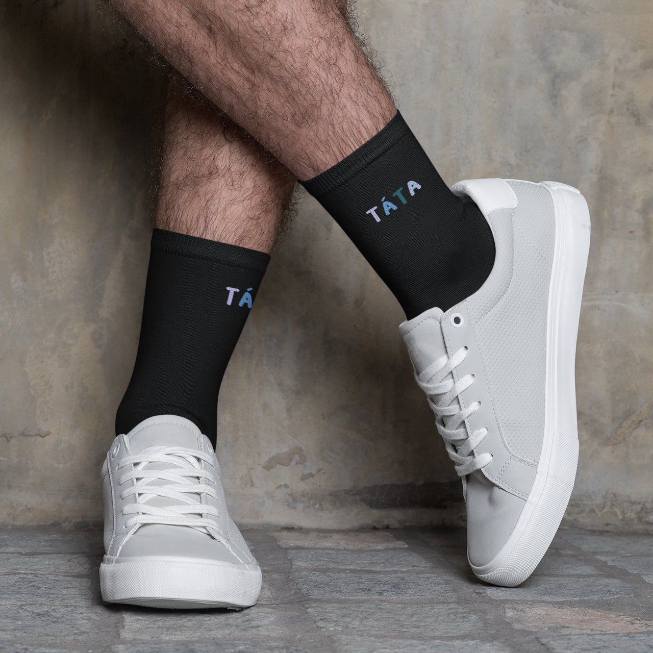 Černé ponožky "Táta". Zabaleno v hnědé stylové krabičce.