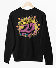 Must UNISEX dressipluus ilma kapuutsita "Peace, love and oldschool"