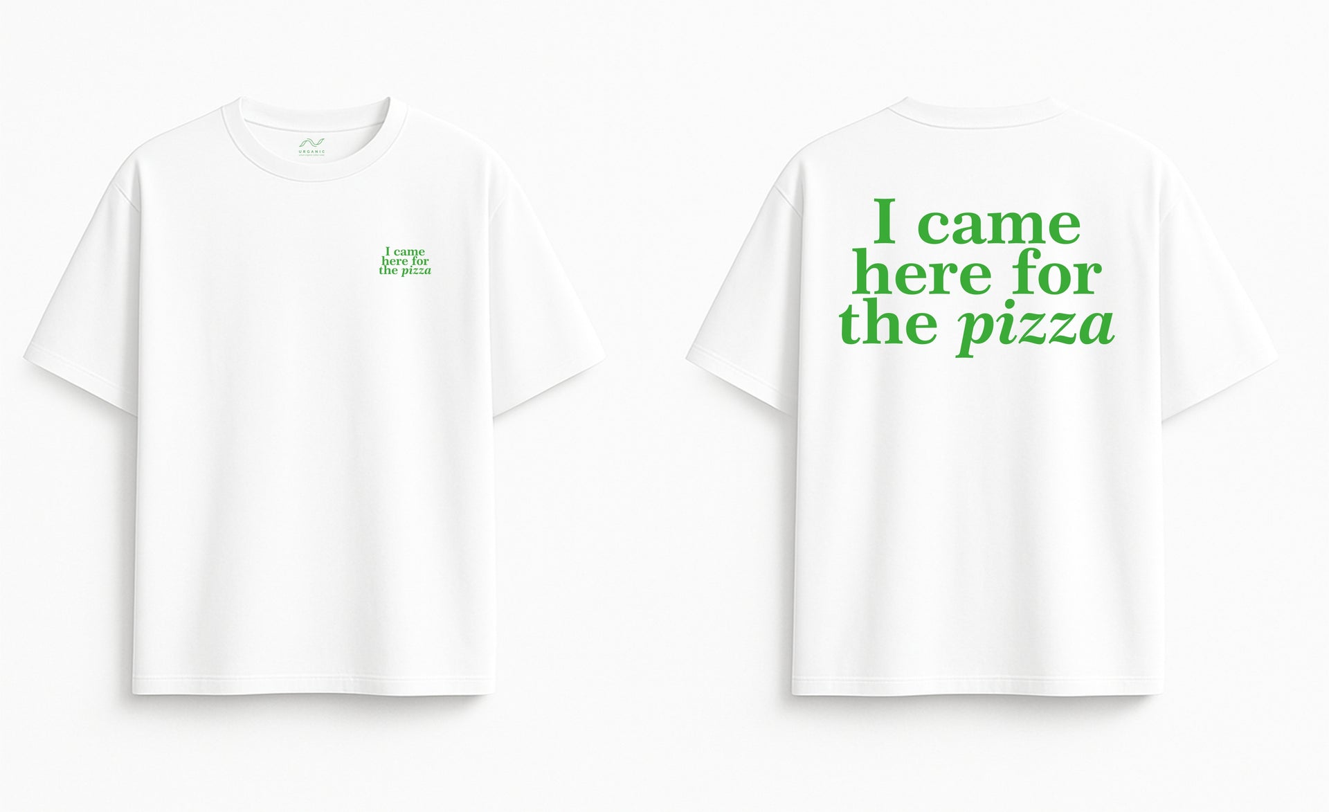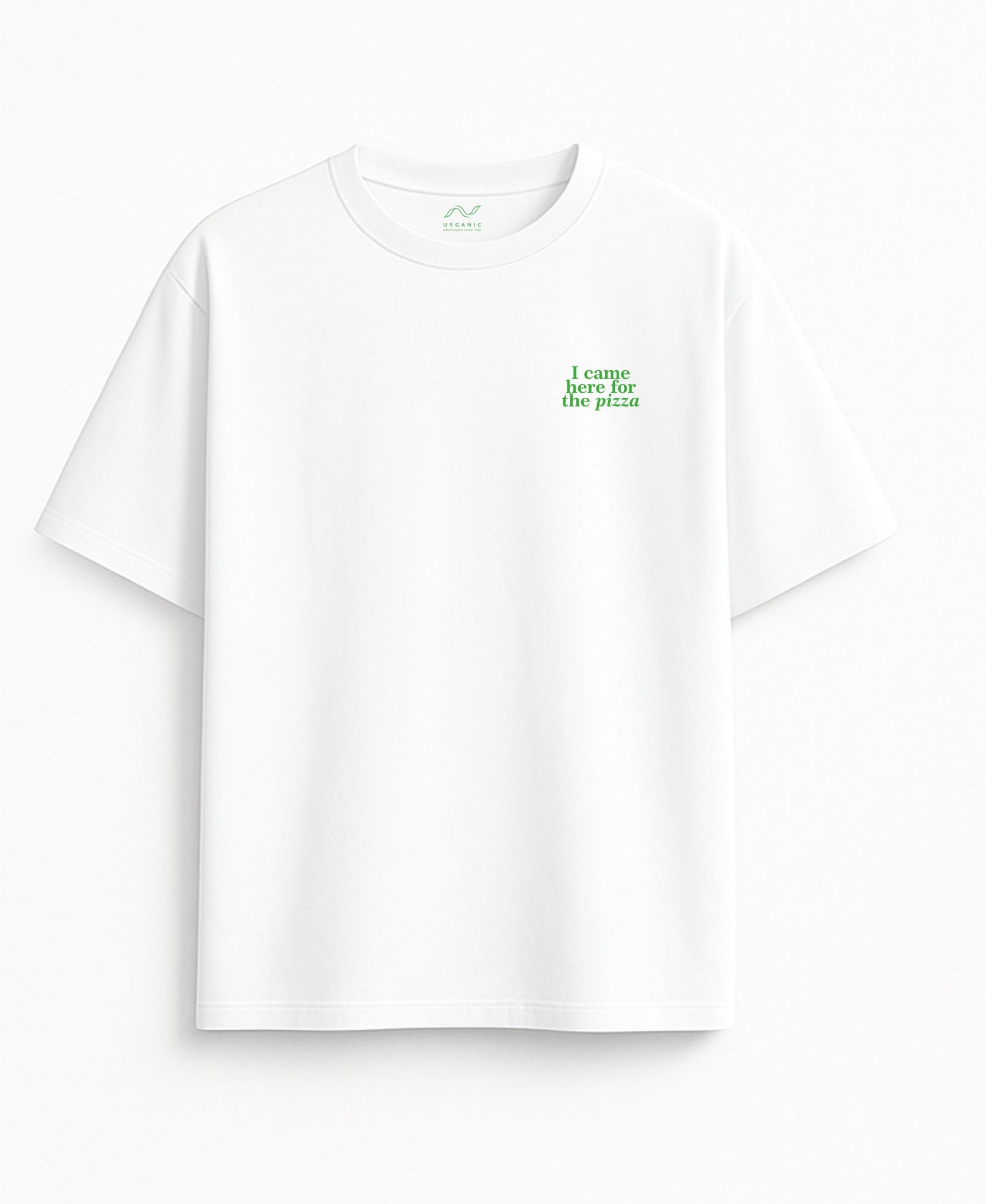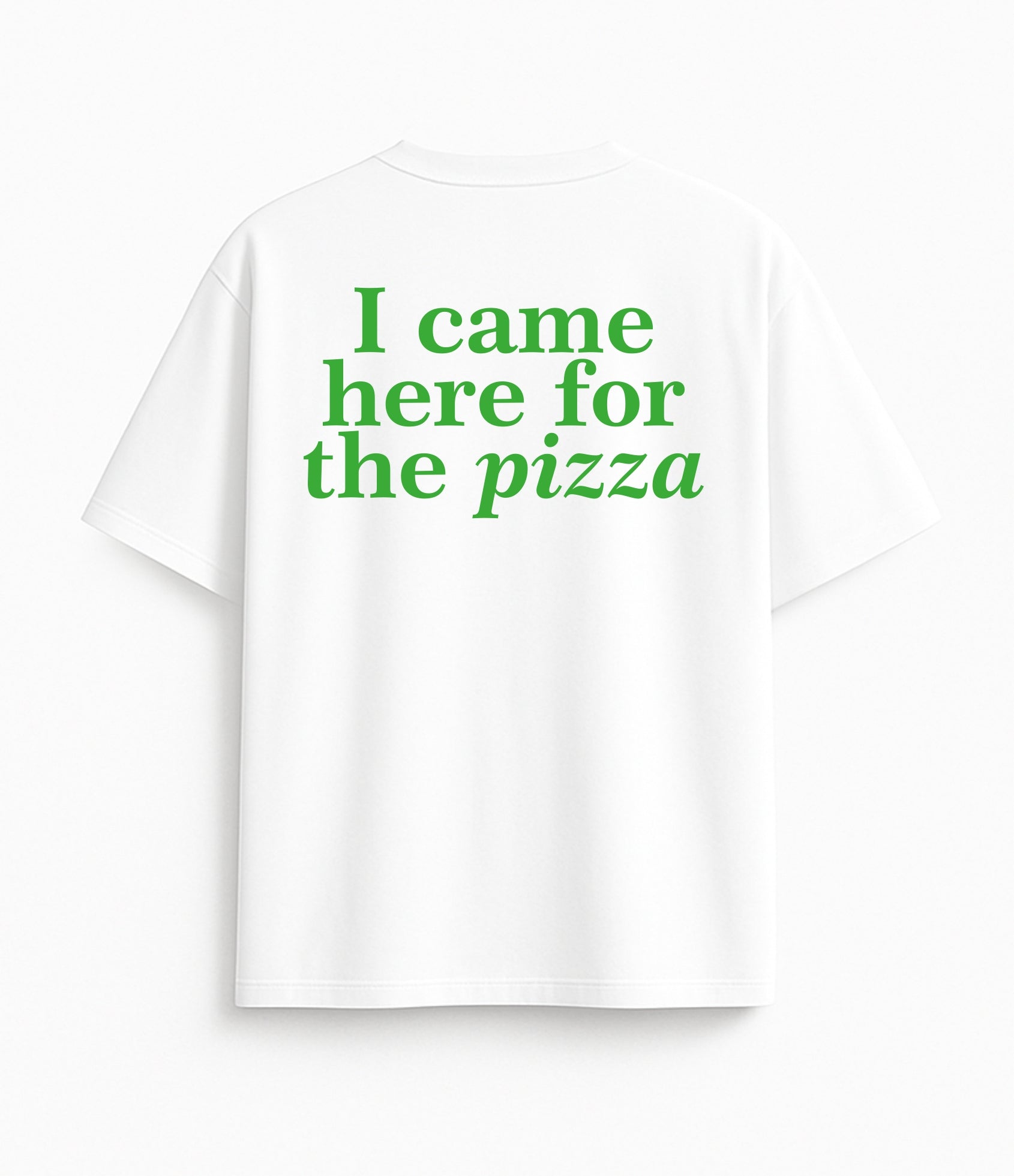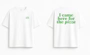 Oversized white T-shirt "I came here for the pizza"