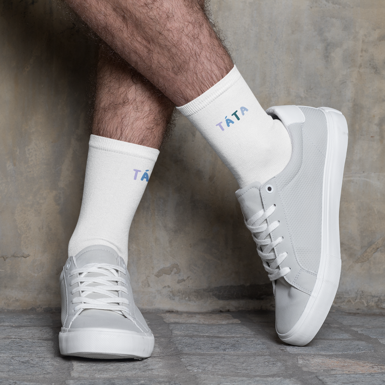 Bílé ponožky "Táta". Zabaleno v hnědé stylové krabičce.