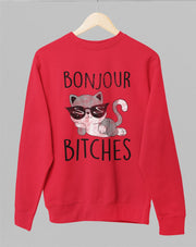 Punane UNISEX dressipluus ilma kapuutsita "Bonjour bitches"