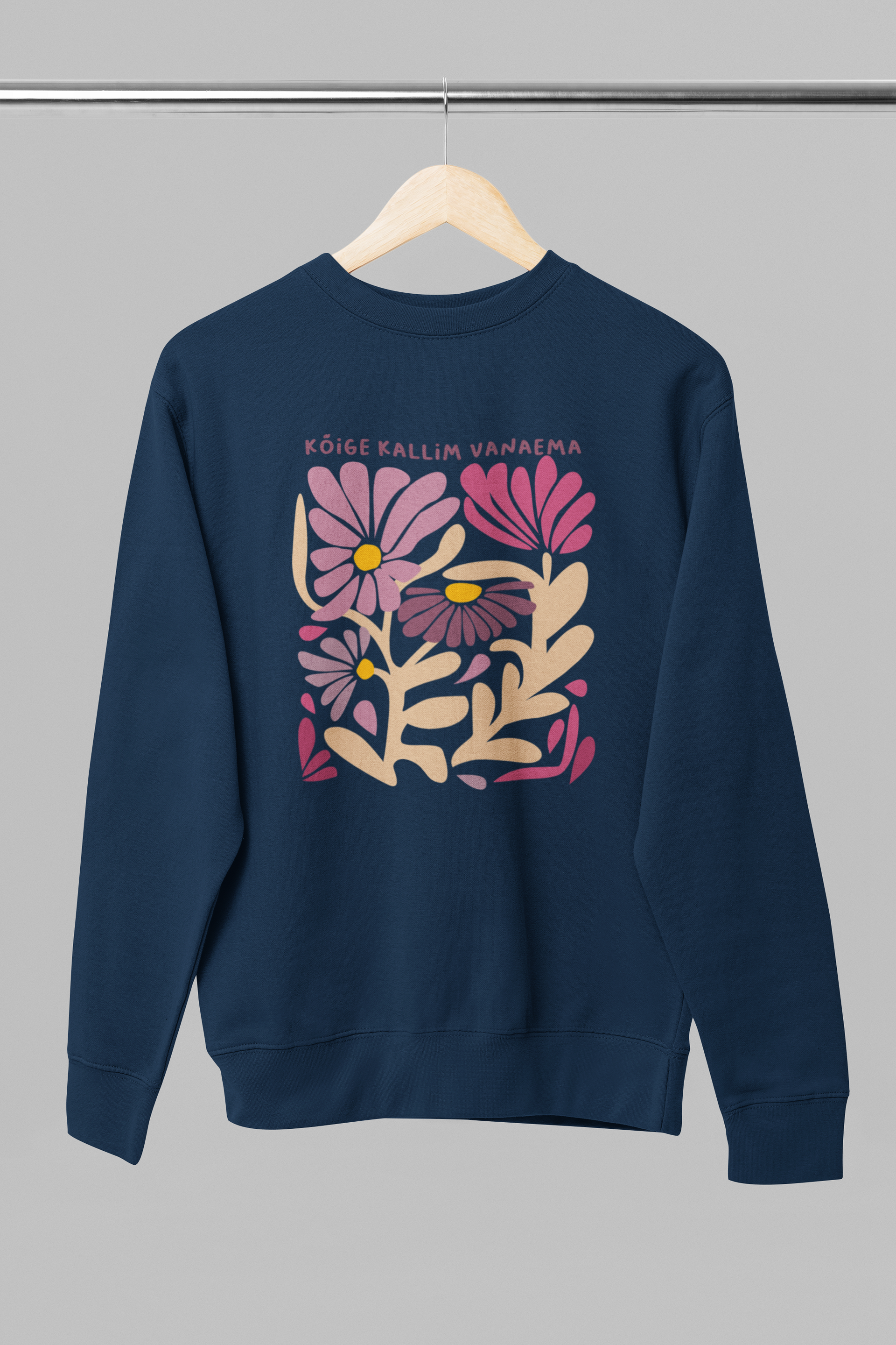 Sinine UNISEX dressipluus ilma kapuutsita "Vanaema lilleaed"