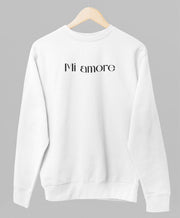Valge UNISEX dressipluus ilma kapuutsita "Mi amore"
